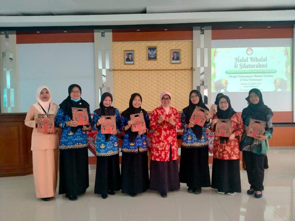BOBOTSARI – Suasana penuh kehangatan mewarnai Aula Handayani SMA Negeri 1 Bobotsari pada Jumat, 17 April 2026. Dharma Wanita Persatuan (DWP) SMA Negeri 1 Bobotsari menyelenggarakan acara Halal Bihalal dan silaturahmi dengan mengusung tema “Merajut Kebersamaan, Menebar Kebaikan di Hari Kemenangan”. Acara diawali dengan pembacaan ayat suci Al-Qur’an dan terjemahannya oleh Siti Uswatun Khasanah, S.Pd. dan Ruswati, S.Pd., serta menyanyikan lagu kebangsaan Indonesia Raya yang dipandu oleh Puji Rahayu, S.Pd., menambah kekhidmatan pertemuan rutin dua bulanan tersebut.
